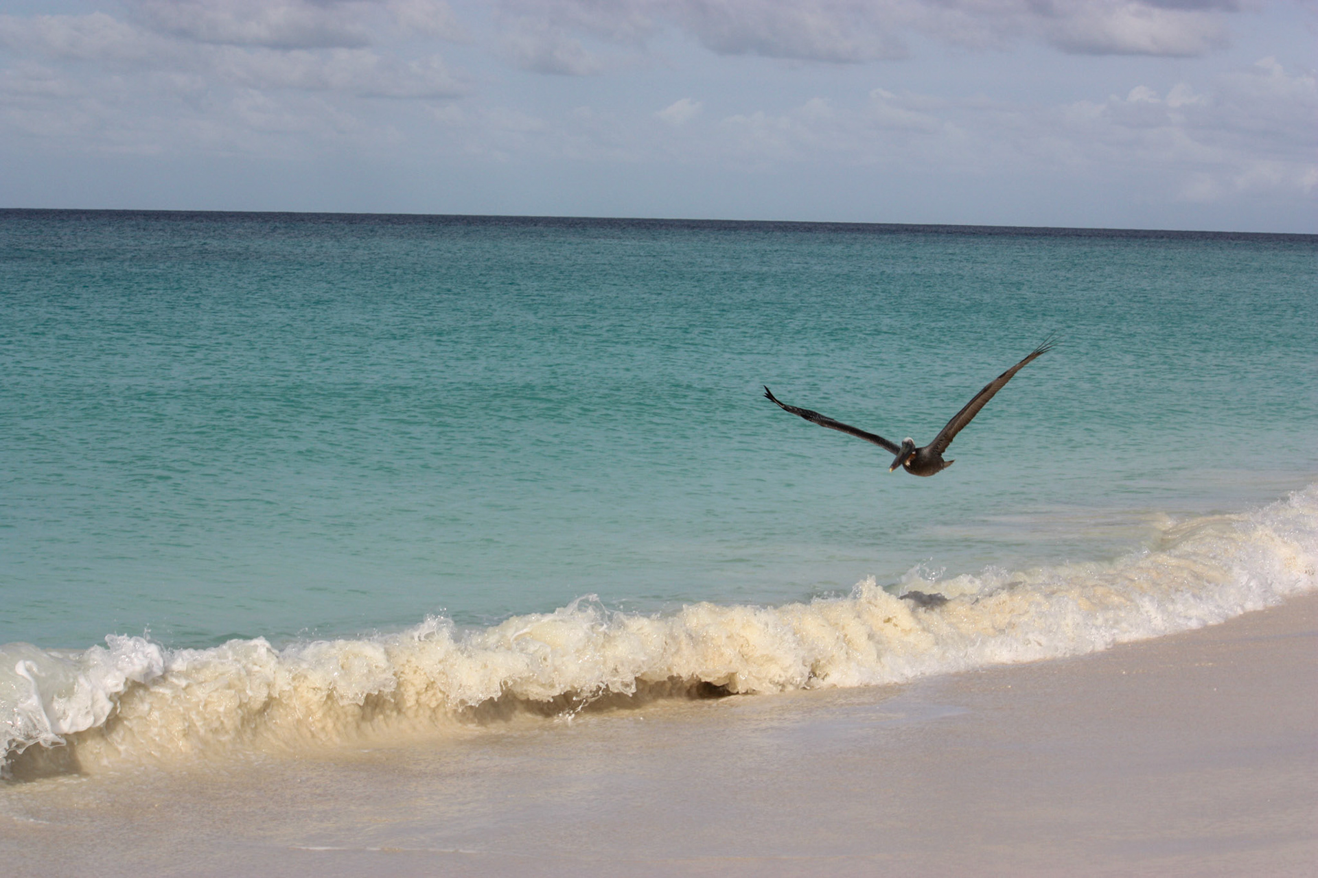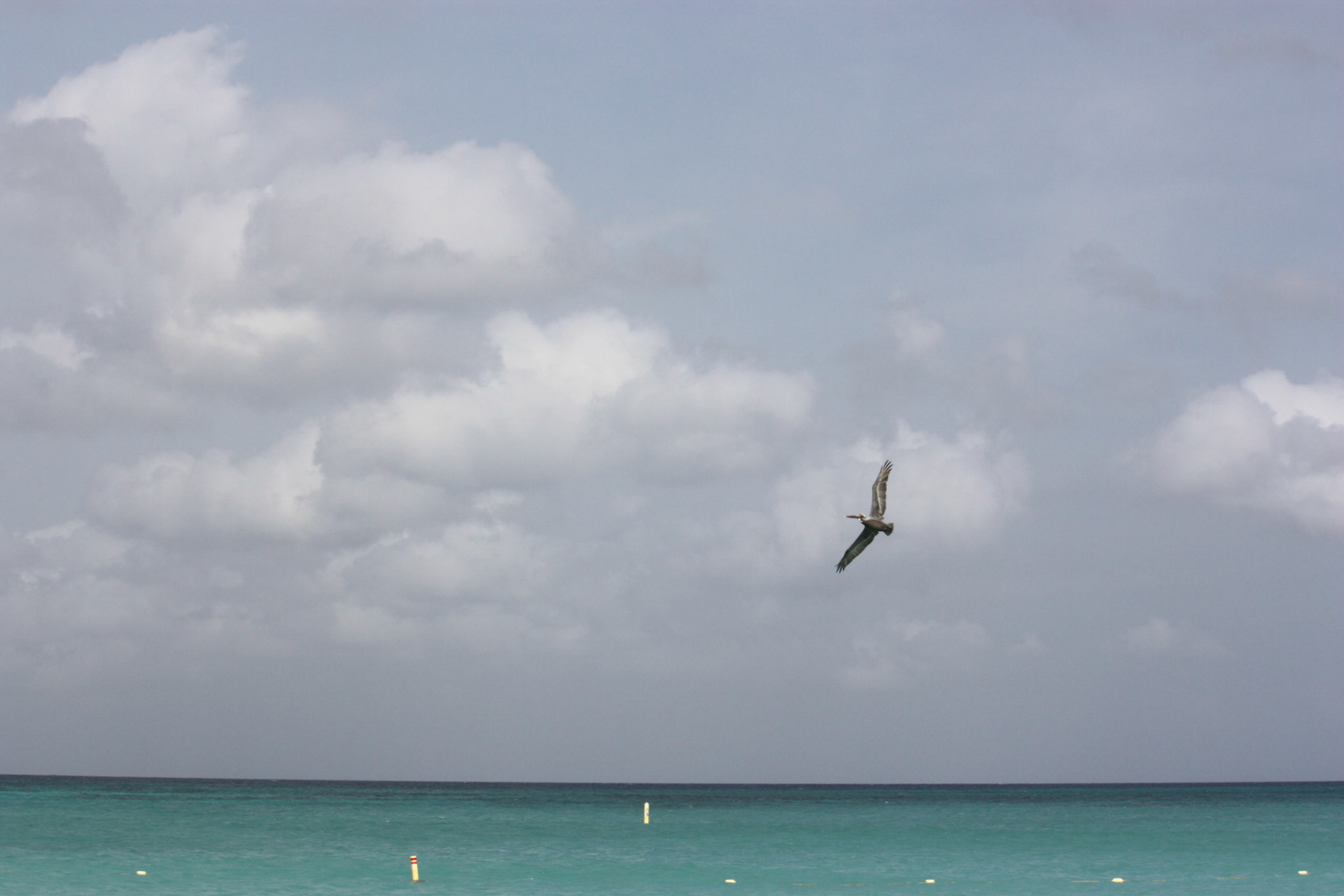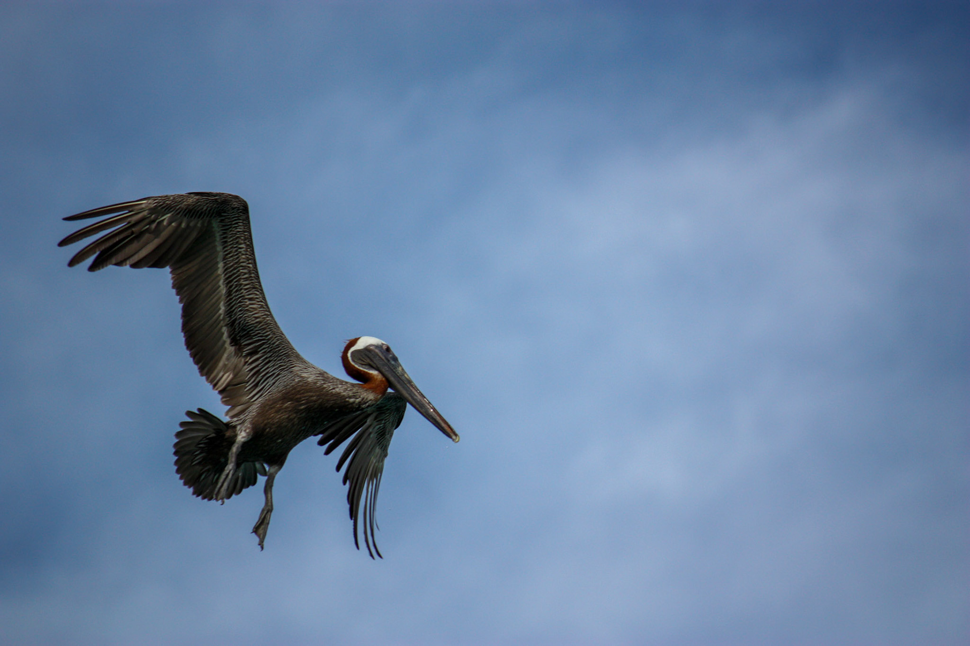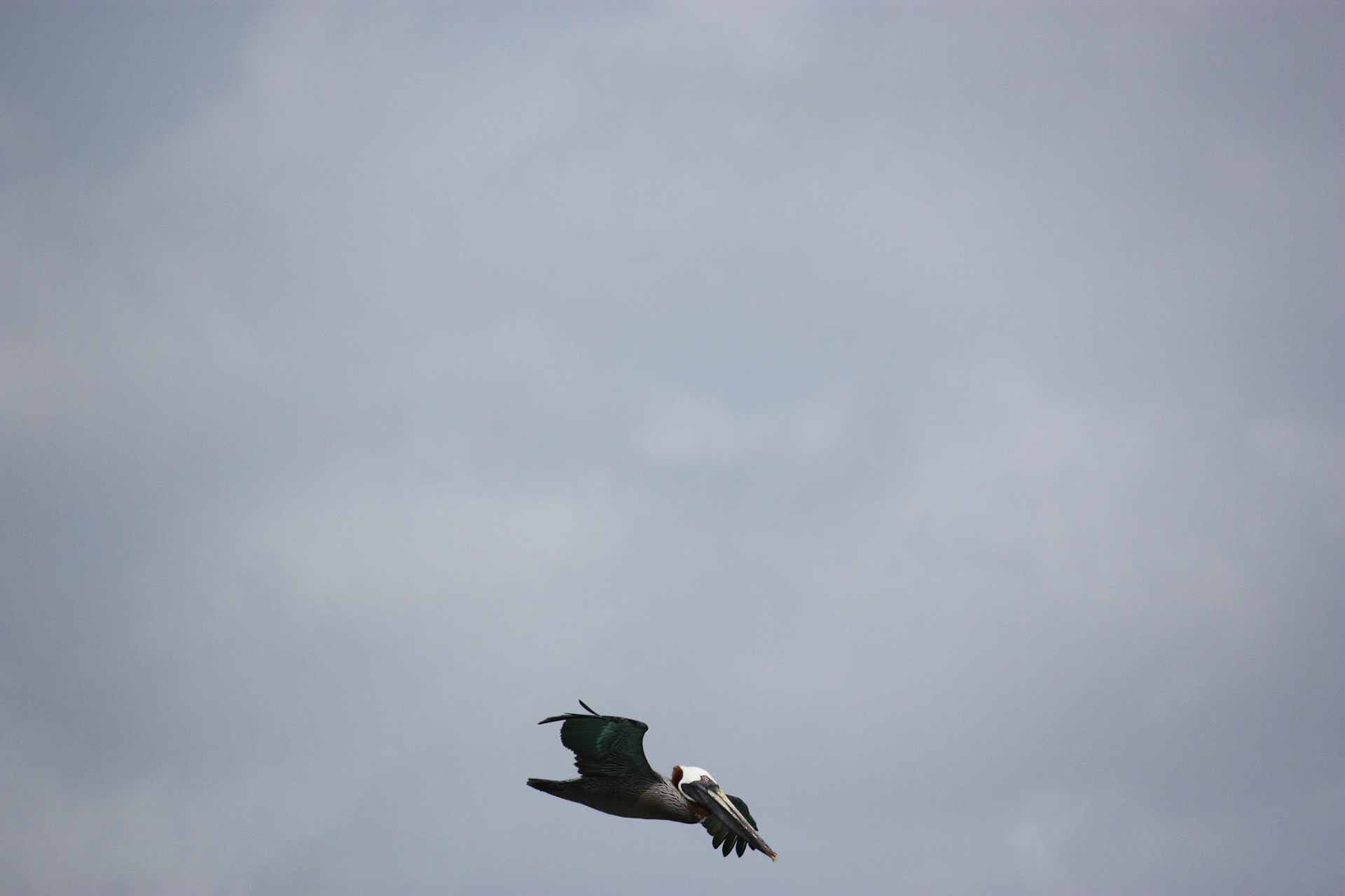 Pelican in flight